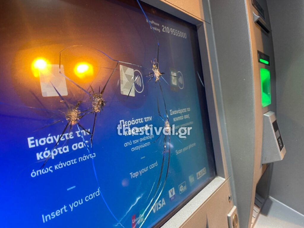 Σύμφωνα με πληροφορίες είχαν καλυμμένα τα χαρακτηριστικά τους και με βαριοπούλες προκάλεσαν φθορές στους υαλοπίνακες καθώς και στο ATM της τράπεζας στην οδό Ίωνος Δραγούμη, ενώ πέταξαν και κόκκινη μπογιά.