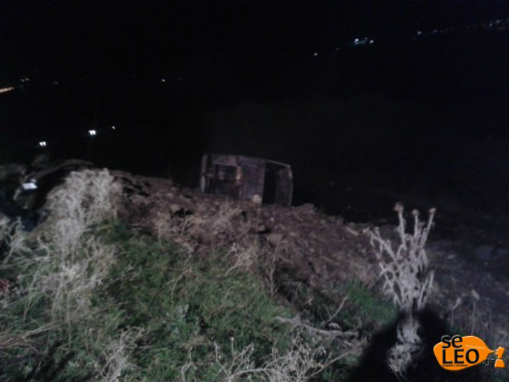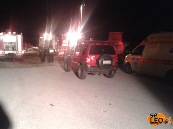 Υπό το φως προβολέων, οι πυροσβέστες διεξήγαν έρευνες για τον εντοπισμό του οδηγού του οχήματος, που κάηκε ολοσχερώς.