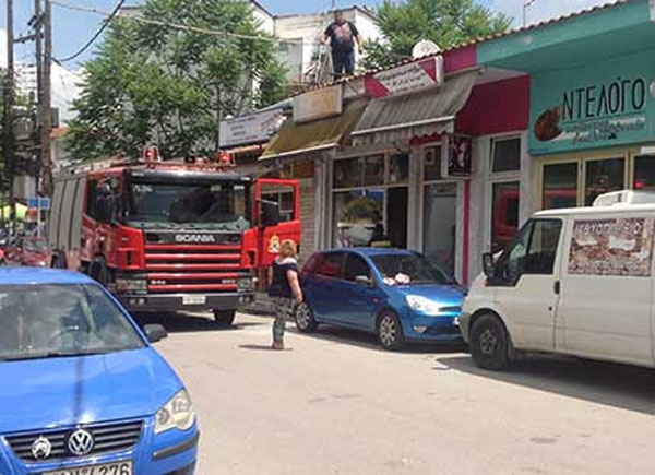 Στο σημείο έσπευσε ένα όχημα της Πυροσβεστικής, ενώ ο ιδιοκτήτης του καταστήματος επιχείρησε να σβήσει τις φλόγες με τη χρήση πυροσβεστήρα.