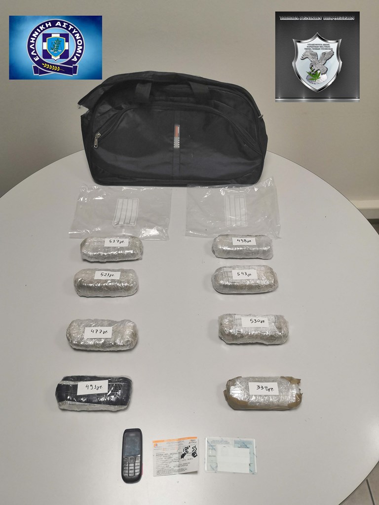 Στην ανακοίνωσή της, η αστυνομία επισημαίνει ότι σε έλεγχο που έγινε στον 44χρονο, διαπιστώθηκε ότι μετέφερε επιμελώς κρυμμένη τη ναρκωτική ουσία σε ταξιδιωτικό σάκο, ενώ κατείχε και χρησιμοποιούσε πλαστό έγγραφο που έφερε τα στοιχεία ταυτότητας ενός Έλληνα, με επικολλημένη τη φωτογραφία του δράστη. Ο συλληφθείς, με τη δικογραφία που σχηματίστηκε σε βάρος του, θα οδηγηθεί στον αρμόδιο εισαγγελέα.
