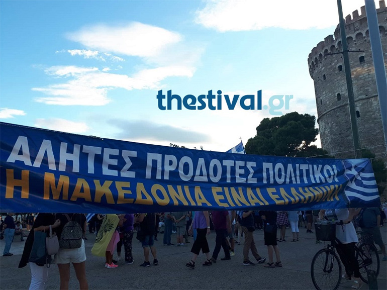 Συγκέντρωση για τη Μακεδονία βρίσκεται σε εξέλιξη αυτή την ώρα μπροστά από τον Λευκό Πύργο, στη Θεσσαλονίκη.