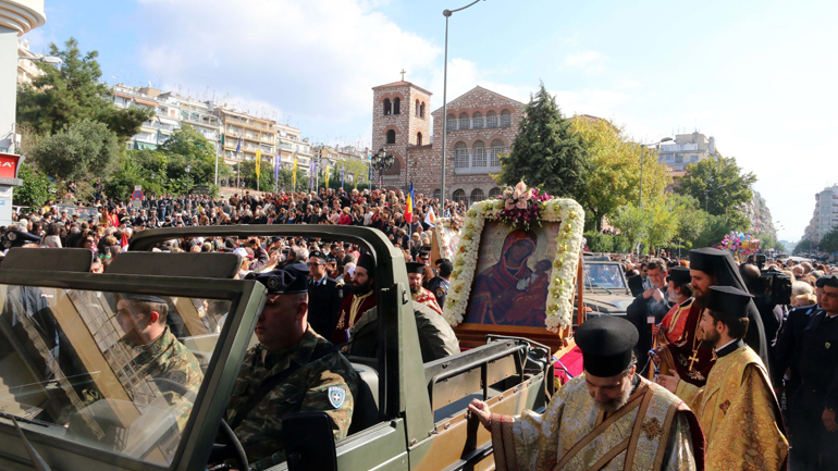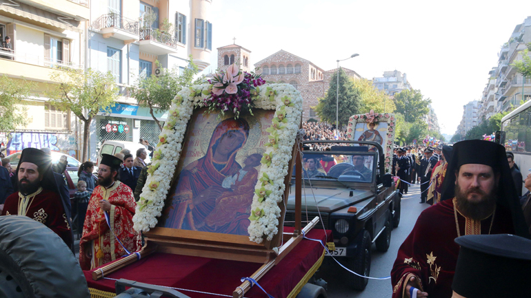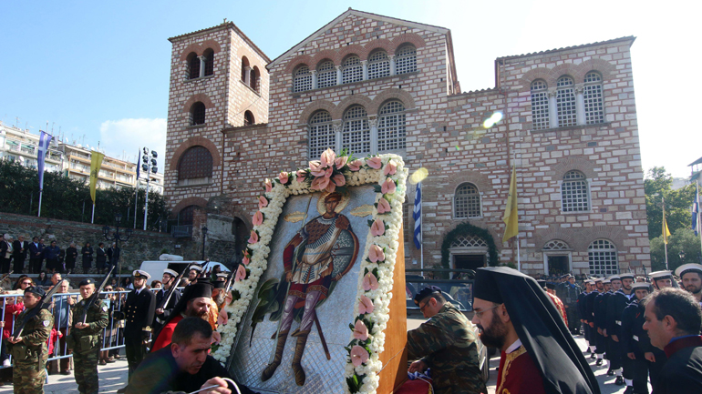 Με τη λιτάνευση της εικόνας του Αγίου Δημητρίου, των λειψάνων του και της εικόνας της Παναγίας της Ελεούσας, παρουσία πλήθους κόσμου ξεκίνησαν οι εορτασμοί στη Θεσσαλονίκη για τη γιορτή του πολιούχου Αγίου Δημητρίου, την απελευθέρωση της πόλης και την εθνική επέτειο του «ΟΧΙ».