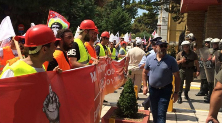 Στο σημείο βρίσκονταν δυνάμεις των ΜΑΤ, οι οποίες δεν επέτρεψαν την είσοδο στους διαδηλωτές.