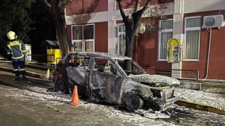 Η Πυροσβεστική κλήθηκε για την κατάσβεση της φωτιάς στο όχημα, ενώ από το σημείο περισυνελέγησαν υπολείμματα των μολότοφ.