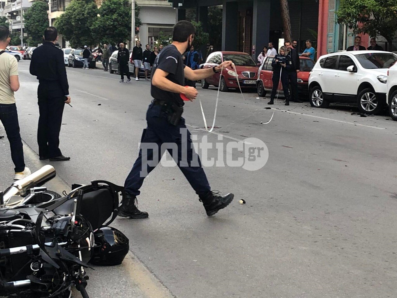 Στο βίντεο του Politic.gr φαίνεται η μεγάλη ταχύτητα με την οποία προσέκρουσε ο δικυκλιστής σε σταθμευμένα οχήματα στην αριστερή πλευρά του δρόμου.