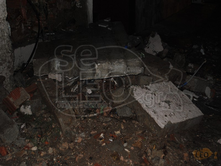 Ντουβάρι ξεκόλλησε από τη θέση του, έπεσε σε αυτοκίνητο που βρισκόταν σταθμευμένο στο προαύλιο και στη συνέχεια κατέληξε στο οδόστρωμα.