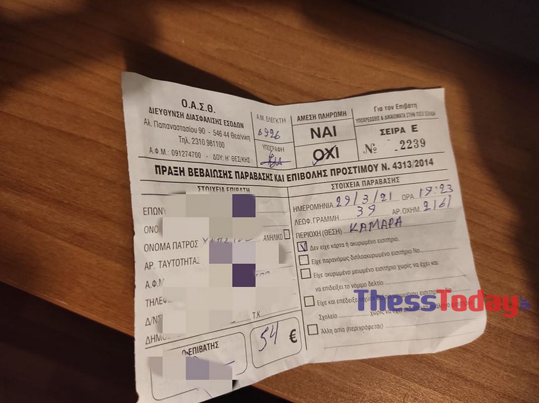 Σύμφωνα με καταγγελία που έγινε στο ThessToday.gr, ελεγκτής την ώρα που «έκοβε» το πρόστιμο των 54 ευρώ (!) εξήγησε στον επιβάτη ότι «μας πιέζουν να κόβουμε πρόστιμα».
