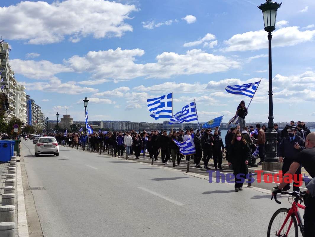 Στη συνέχεια εθνικιστές βγήκαν στον δρόμο και πραγματοποίησαν πορεία στο παραλιακό μέτωπο της πόλης, την ώρα που στο άγαλμα Βενιζέλου βρισκόταν σε εξέλιξη συγκέντρωση φοιτητών και ατόμων του ευρύτερου αντιεξουσιαστικού χώρου.