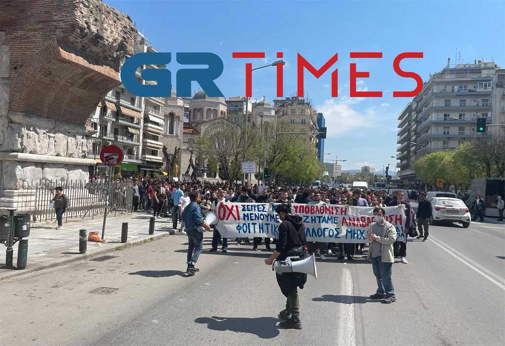Πορεία ενάντια στη μετακόμιση του Τμήματος Μηχανικών Περιβάλλοντος του ΔΙΠΑΕ (Διεθνές Πανεπιστήμιο) Θεσσαλονίκης και Καβάλας στις Σέρρες, πραγματοποιούν αυτήν την ώρα φοιτητές στο κέντρο της Θεσσαλονίκης.