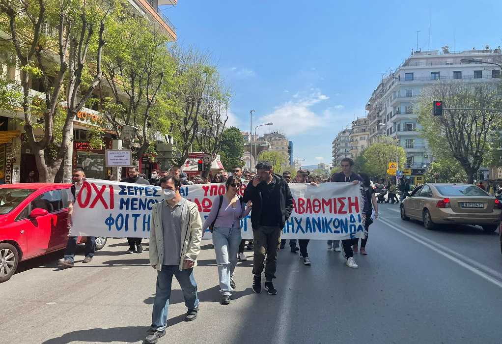 Οι φοιτητές κινούνται αυτήν την ώρα στην οδό Εγνατία και κατευθύνονται προς το υπουργείο Μακεδονίας Θράκης.