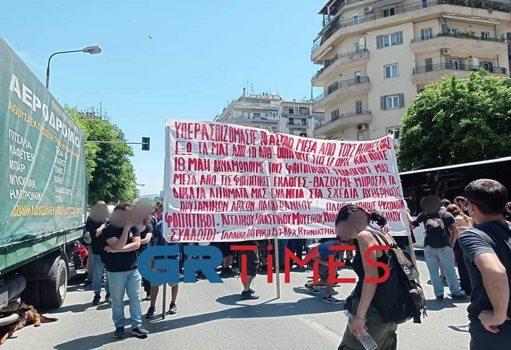 Μέλη των φοιτητικών συλλόγων και άτομα του ευρύτερου αντιεξουσιαστικού χώρου πραγματοποίησαν στη Θεσσαλονίκη λίγο μετά τη 13:00, πορεία διαμαρτυρίας για την παρουσία αστυνομικών εντός του ΑΠΘ.
