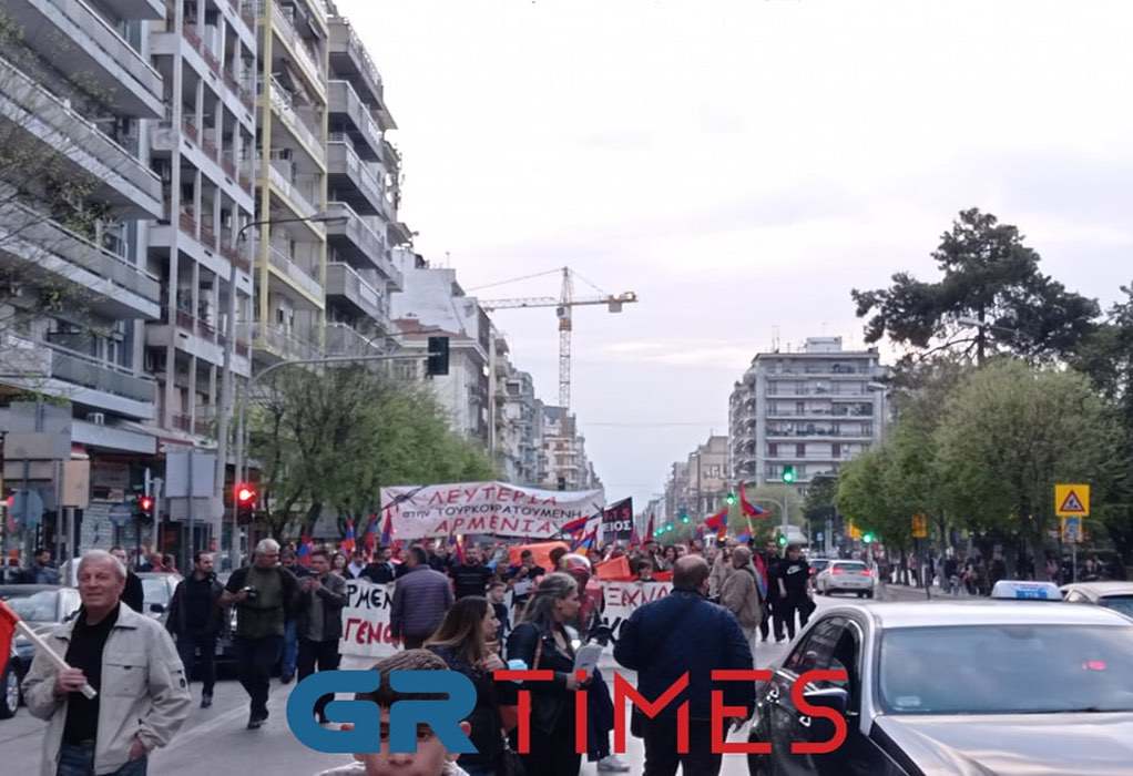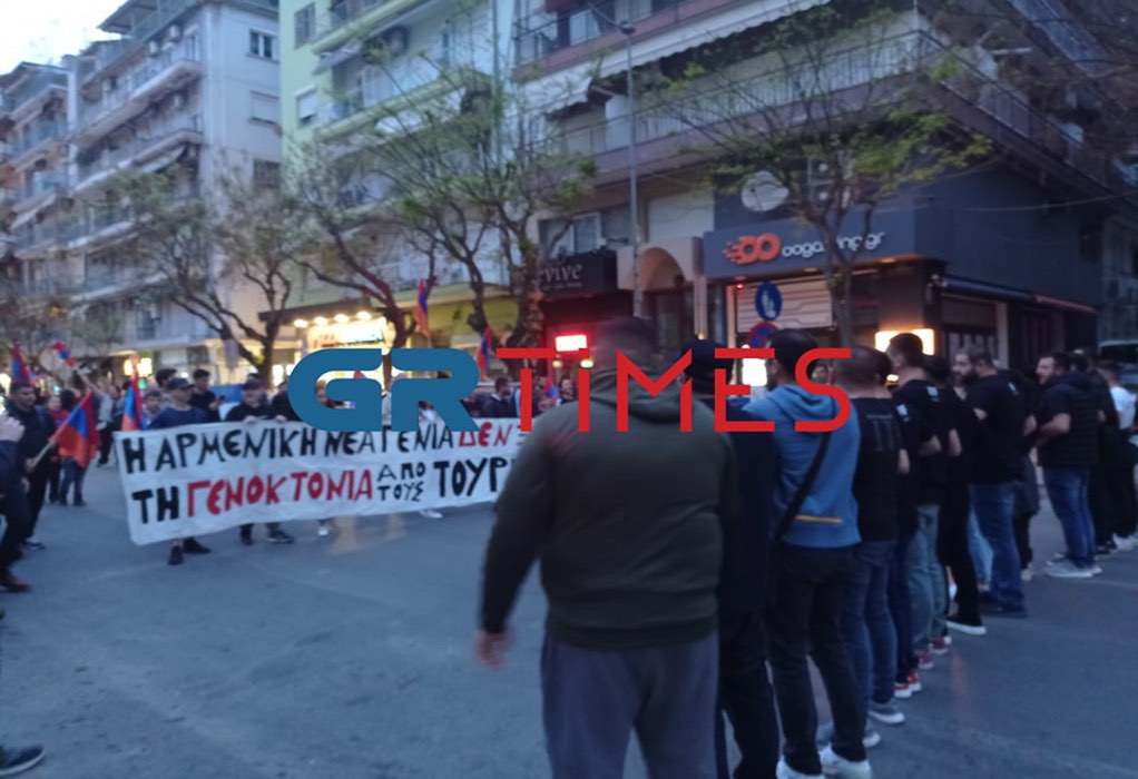 Πορεία πραγματοποίησαν απόψε μέλη της αρμενικής κοινότητας της Θεσσαλονίκης, με αφορμή τη συμπλήρωση 107 χρόνων από τη Γενοκτονία των Αρμενίων.