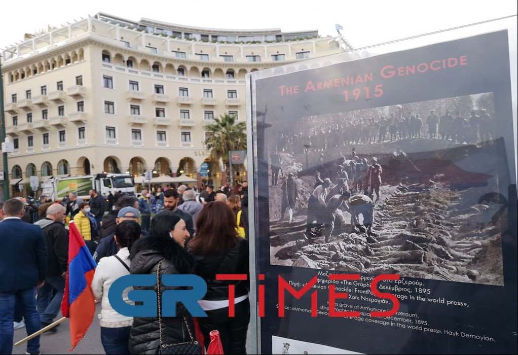 Κρατώντας σημαίες της Αρμενίας και πανό που έγραφε «Η αρμενική νέα γενιά δεν ξεχνά τη Γενοκτονία από τους Τούρκους το 1915», οι διαδηλωτές συγκεντρώθηκαν στην πλατεία Αριστοτέλους, όπου τα τελευταία 24ωρα λειτουργεί ενημερωτικό περίπτερο. Εν μέσω συνθημάτων κινήθηκαν στη συνέχεια προς το τουρκικό προξενείο επί της οδού Αγίου Δημητρίου.