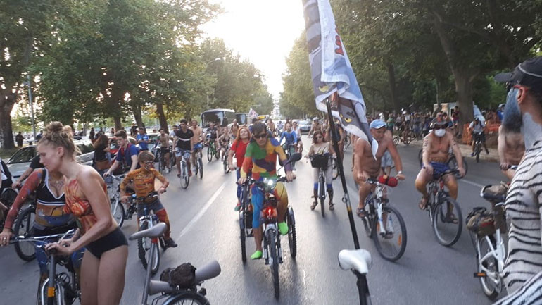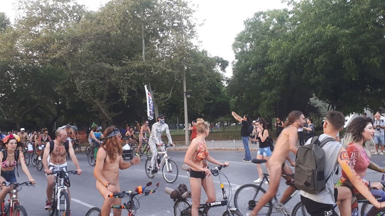 Για τη δημιουργία ασφαλούς δικτύου ποδηλατοδρόμων, το περιβάλλον και τη βιώσιμη κινητικότητα διαδήλωσαν οι ποδηλάτες που πήραν μέρος στην 11η Διεθνή Γυμνή Ποδηλατοδρομία.