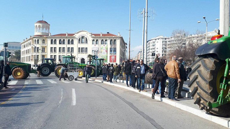 Τον κόμβο στην πλατεία της ΧΑΝΘ έκλεισαν στη μια και μισή το μεσημέρι, συμβολικά, με περίπου τριάντα τρακτέρ, στη νότια πύλη της Διεθνούς Έκθεσης Θεσσαλονίκης, αγρότες, μέλη της «Επιτροπής Αγώνα Αγροτών Ελλάδος».