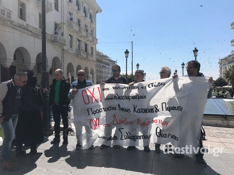 Συγκέντρωση διαμαρτυρίας για τους πλειστηριασμούς πραγματοποίησαν στην Πλατεία Αριστοτέλους, στο ύψος της οδού Τσιμισκή, μέλη του «Συντονισμού Συλλογικοτήτων Θεσσαλονίκης».