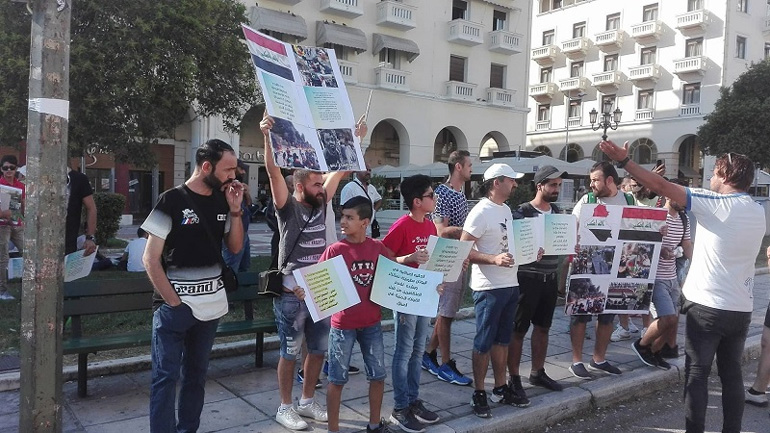 Συγκέντρωση διαμαρτυρίας για την κατάσταση στο Ιράκ, πραγματοποίησαν νωρίτερα το απόγευμα της Τετάρτης στην πλατεία Αριστοτέλους Ιρακινοί που ζουν στη Θεσσαλονίκη.