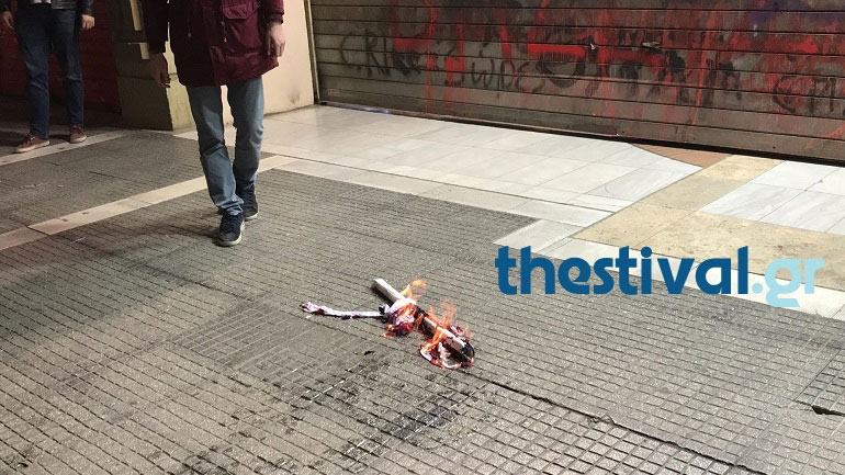 Ακολούθησε πορεία που κατέληξε, στην οδό Τσιμισκή, έξω από το εμπορικό κέντρο, όπου στεγάζεται το προξενείο των ΗΠΑ. Εκεί οι διαδηλωτές έκαψαν σημαία των ΗΠΑ.
