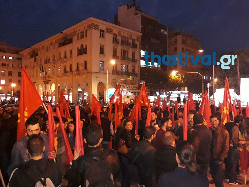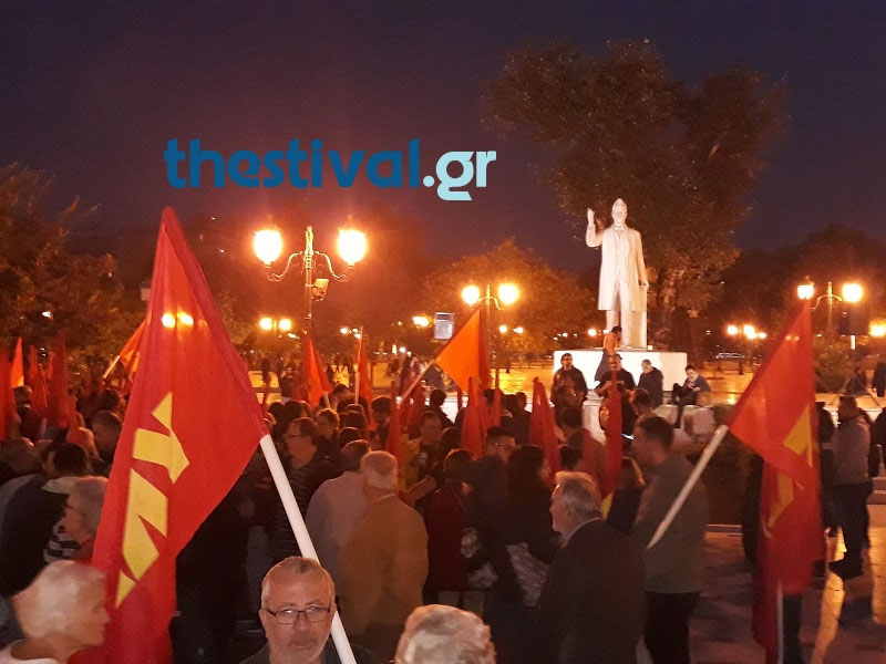 Συγκέντρωση διαμαρτυρίας πραγματοποιούν αυτήν την ώρα μέλη της Οργάνωσης Κεντρικής Μακεδονίας του Κομμουνιστικού Κόμματος Ελλάδας, στο άγαλμα του Ελ. Βενιζέλου στο κέντρο της Θεσσαλονίκης.