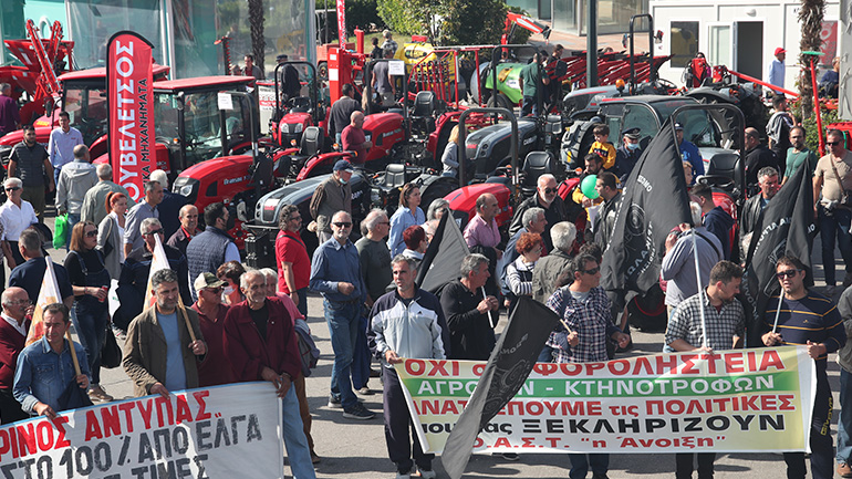 Όπως υπογράμμισε: «Διοργανώνουμε σήμερα ένα μεγάλο αγροτικό συλλαλητήριο στην Agrotica για να αναδείξουμε τα οξυμένα προβλήματα που αντιμετωπίζει ο πρωτογενής τομέας, οι αγρότες και οι κτηνοτρόφοι, που είναι το μεγάλο κόστος παραγωγής και οι χαμηλές τιμές στα προϊόντα που φτάνουν όμως πέντε, έξι και δέκα φορές ακριβότερα στη λαϊκή κατανάλωση. Όλους μας εκμεταλλεύονται και κερδοσκοπούν σε βάρος μας. Αρκετοί συνάδελφοι έτσι όπως είναι η κατάσταση δε θα μπορέσουν να καλλιεργήσουν του χρόνου. Οι κινητοποιήσεις μας το επόμενο διάστημα πρέπει να πιέσουν την κυβέρνηση για να μειωθεί το κόστος παραγωγής ουσιαστικά και όχι με τα ψίχουλα που μας πετάνε. Είναι μια πολύ δύσκολη χρονιά».
