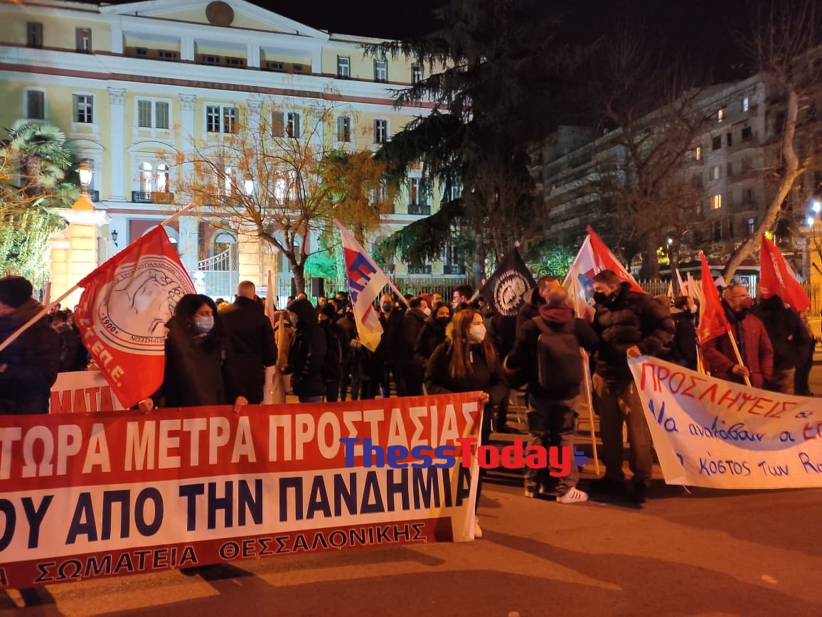 Συλλαλητήριο έξω από το Υφυπουργείο Εσωτερικών, Μακεδονίας – Θράκης, πραγματοποιούν αυτήν την ώρα εργατικά σωματεία της Θεσσαλονίκης απαιτώντας μέτρα για την προστασία της υγείας του λαού.