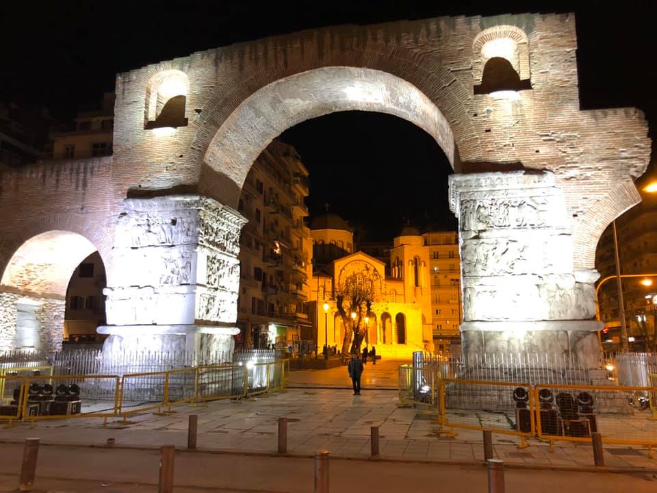 Με λευκό χρώμα που συμβολίζει την Ανάσταση του Κυρίου, φωταγωγήθηκε σήμερα η Aψίδα του Γαλερίου στην περιοχή της Καμάρας.