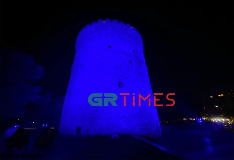 Με μπλε χρώματα φωταγωγήθηκε τη Δευτέρα το μνημείο του Λευκού Πύργου στο κέντρο της Θεσσαλονίκης, για την Παγκόσμια Ημέρα για τον Διαβήτη.