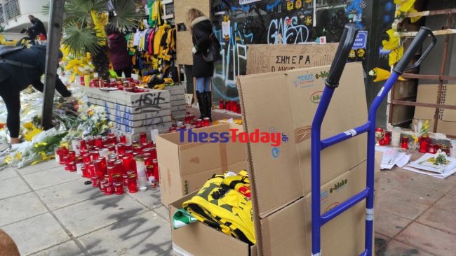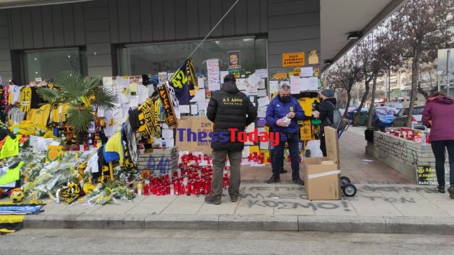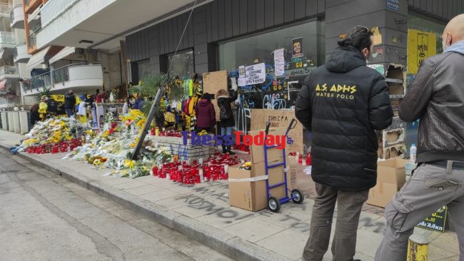 Εκπρόσωποι του Ερασιτέχνη Άρη έφτασαν στο σημείο από νωρίς το πρωί της Δευτέρας και, με αφορμή την επικείμενη καταιγίδα που ενδεχομένως «χτυπήσει» με δυνατούς ανέμους και βροχοπτώσεις τη Θεσσαλονίκη, αποφάσισαν να μαζέψουν τα εκατοντάδες αντικείμενα που συγκεντρώθηκαν, πλην των κεριών και των λουλουδιών.