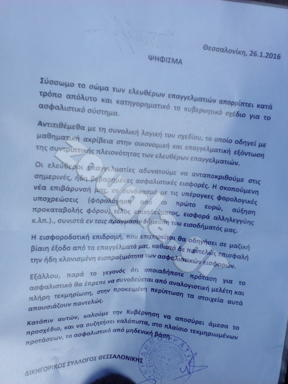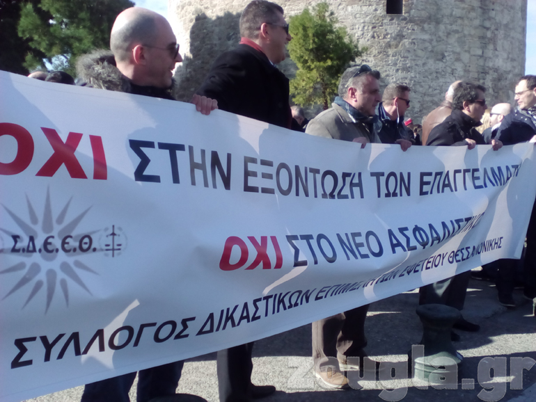 Στην κινητοποίηση, που στοχεύει στη ματαίωση των προωθούμενων αλλαγών της κυβέρνησης στην κοινωνική ασφάλιση και το φορολογικό, συμμετείχαν μεταξύ άλλων οδοντίατροι, ιατροί, φαρμακοποιοί, συμβολαιογράφοι και δικηγόροι, καθώς και μέλη του Τεχνικού Επιμελητηρίου Κεντρικής Μακεδονίας.