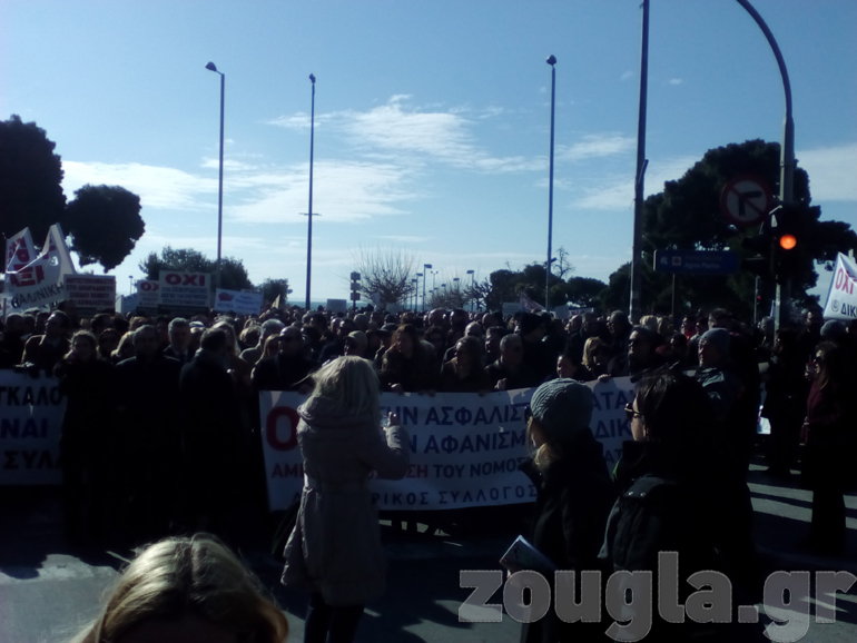 Η πορεία ξεκίνησε λίγο μετά τις 12.15 το μεσημέρι μπροστά από τον Λευκό Πύργο και έφθασε στο Υπουργείο Μακεδονίας – Θράκης, όπου κατατέθηκε και ψήφισμα. Οι διαδηλωτές κρατούσαν πανό και φώναζαν συνθήματα κατά του υπουργού Εργασίας, Κοινωνικής Ασφάλισης και Κοινωνικής Αλληλεγγύης Γ. Κατρούγκαλου.