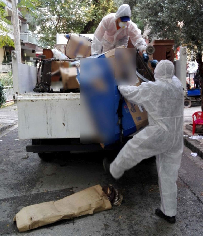 Πιο συγκεκριμένα, Αστυνομικού Τμήματος Τούμπας – Τριανδρίας με τη συμμετοχή συνεργείου καθαριότητας του Δήμου Θεσσαλονίκης, πραγματοποίησαν, παρουσία δικαστικού λειτουργού, έρευνα σε οικία, στην περιοχή της Τούμπας κατά την οποία εντοπίσθηκαν μεταξύ άλλων, παράσιτα και έντομα υγειονομικής σημασίας, μεγάλος όγκος απορριμμάτων, ειδών ρακοσυλλογής και αντικειμένων, που στο σύνολό τους ζυγίζουν 4 τόνους περίπου, τα οποία οι συλληφθέντες είχαν περισυλλέξει, όπως προέκυψε από την αστυνομική έρευνα, από κάδους απορριμμάτων, ενώ διαπιστώθηκαν ελλιπείς συνθήκες καθαριότητας και διαβίωσης του οικήματος, καθώς και έντονη δυσοσμία.