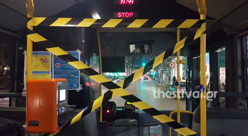 Τοποθετήθηκαν την Παρασκευή διαχωριστικά, έτσι ώστε να αποκλειστεί η μπροστινή πόρτα των αστικών του ΟΑΣΘ, στο πλαίσιο μέτρων, που λαμβάνονται λόγω του κορωνοϊού.