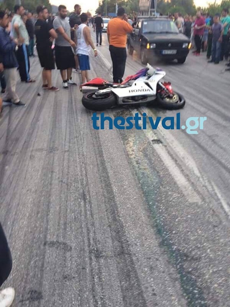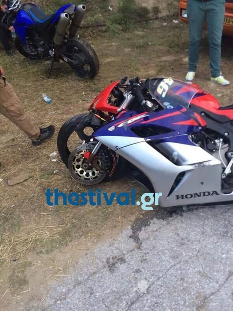 Οι ίδιες πληροφορίες αναφέρουν ότι το τροχαίο σημειώθηκε κατά τη διάρκεια αυτοσχέδιων αγώνων με μηχανές. Ο ένας μοτοσικλετιστής έτρεχε στην ευθεία ενώ ο δεύτερος έκανε αναστροφή. Από τη σύγκρουση τραυματίστηκε σοβαρά στο κεφάλι ο ένας από τους δύο μοτοσικλετιστές καθώς και ένας θεατής.