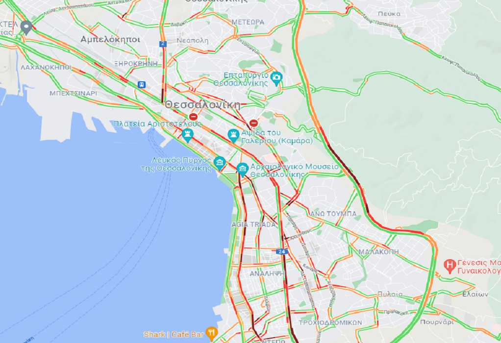Στα “κόκκινα” βρίσκεται η Περιφερειακή Οδός, με την κυκλοφορία να είναι ιδιαίτερα αυξημένη, όπως βλέπετε και στο χάρτη της Google Maps και στα δύο ρεύματα κυκλοφορίας.