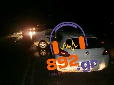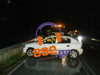 Λόγω της ολισθηρότητας του δρόμου, ο οδηγός ενός Ι.Χ. έχασε τον έλεγχό του οχήματός του, με αποτέλεσμα να βγει στο αντίθετο ρεύμα και να συγκρουστεί πλαγιομετωπικά με διερχόμενο αυτοκίνητο. Από το ατύχημα τραυματίστηκε ελαφρά ο οδηγός του ενός Ι.Χ.. Και τα δύο οχήματα υπέστησαν σοβαρές υλικές ζημιές.