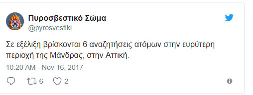 Σύμφωνα με πηγές από το Θριάσιο Νοσοκομείο, μέχρι στιγμής έχουν αναγνωριστεί έξι από τους 15 νεκρούς στην ευρύτερη περιοχή της Μάνδρας.