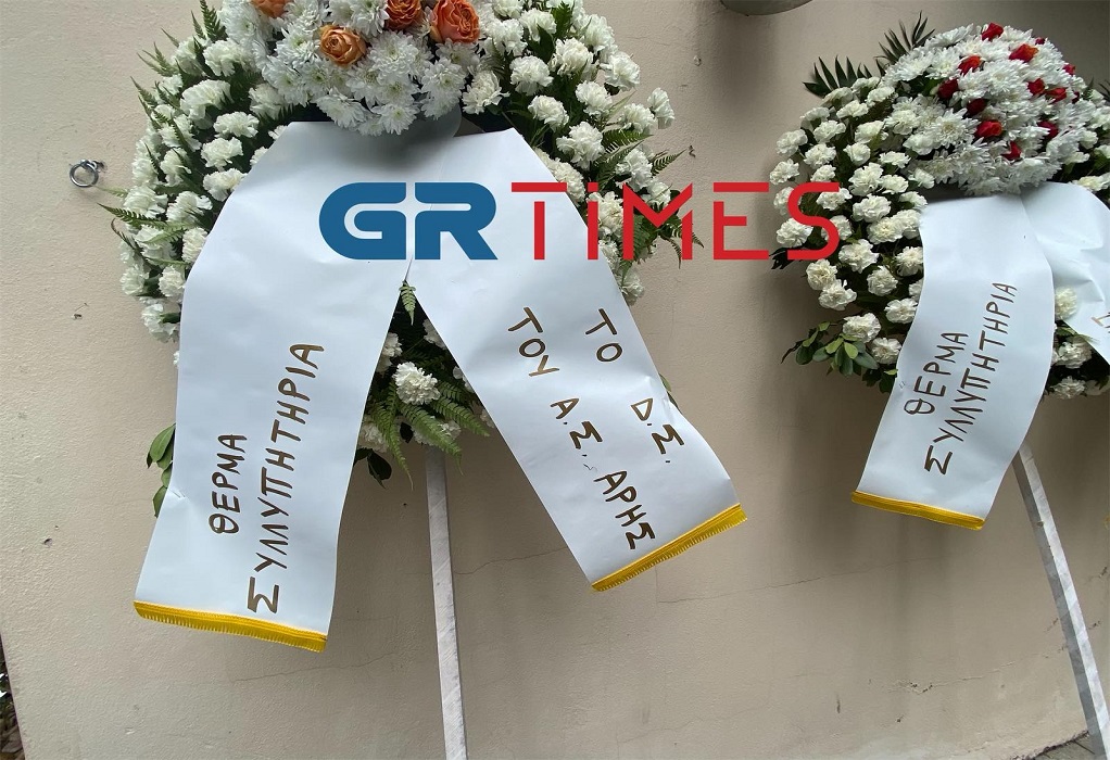 Κόσμος με λευκά γαρύφαλλα, τα οποία υπάρχουν και πάνω στο φέρετρο του 19χρονου, προσέρχεται στην εκκλησία προκειμένου να αποτίσει το ύστατο «χαίρε» στον 19χρονο φίλαθλο του Άρη.