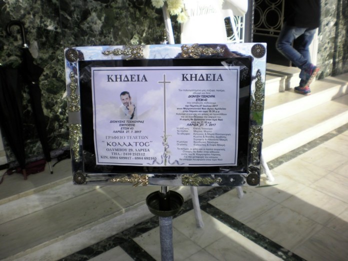 Θρήνος και βουβός πόνος στην κηδεία του γνωστού επιχειρηματία της Λάρισας, Διονύση Τσεκούρα, που έχασε τόσο άδικα την ζωή του χθες το βράδυ από πτώση αεροσκάφους της Αερολέσχης Λάρισας, στα Δένδρα.