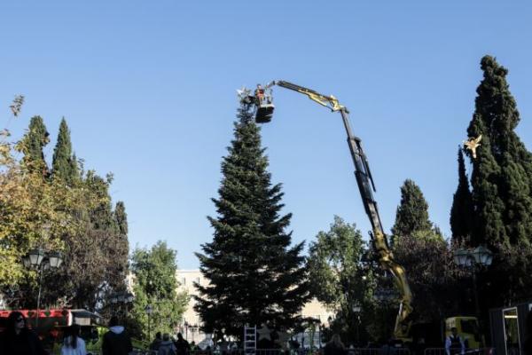 Στο κλίμα των εορτών μπαίνει η Αθήνα με το χριστουγεννιάτικο δέντρο να παίρνει τη θέση του στην πλατεία Συντάγματος. Πρόκειται για ένα δέντρο ύψους 17 μέτρων το οποίο ήρθε από το Καρπενήσι.