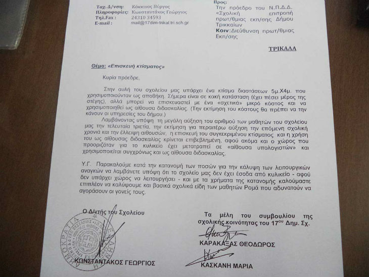 Τριτοκοσμικές είναι οι συνθήκες που επικρατούν στο 17ο Δημοτικό Σχολείο Τρικάλων, με το κυλικείο να μετατρέπεται σε αίθουσα πληροφορικής και το γραφείο διδασκόντων σε τάξη διδασκαλίας, προκειμένου να καλυφθούν οι ανάγκες που προκύπτουν από τον αυξημένο αριθμό μαθητών.