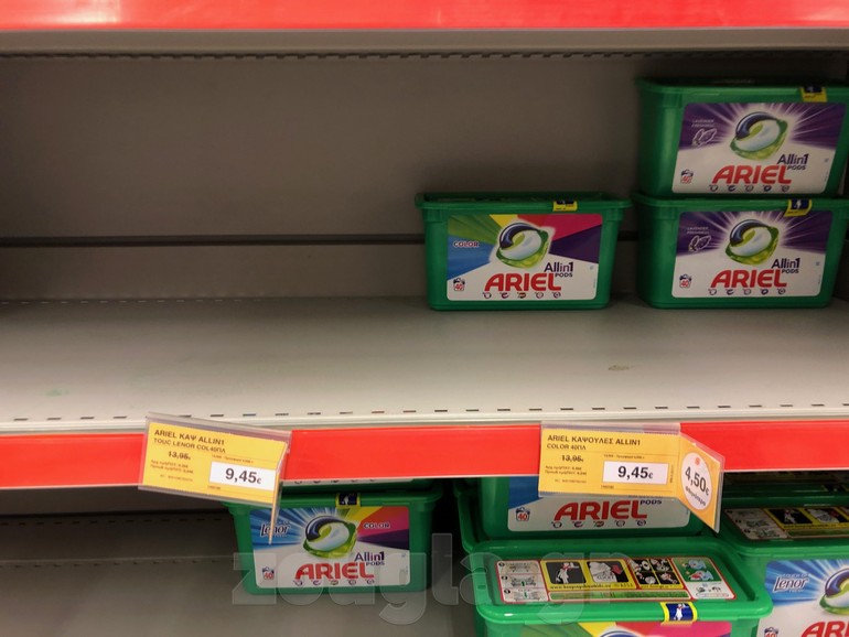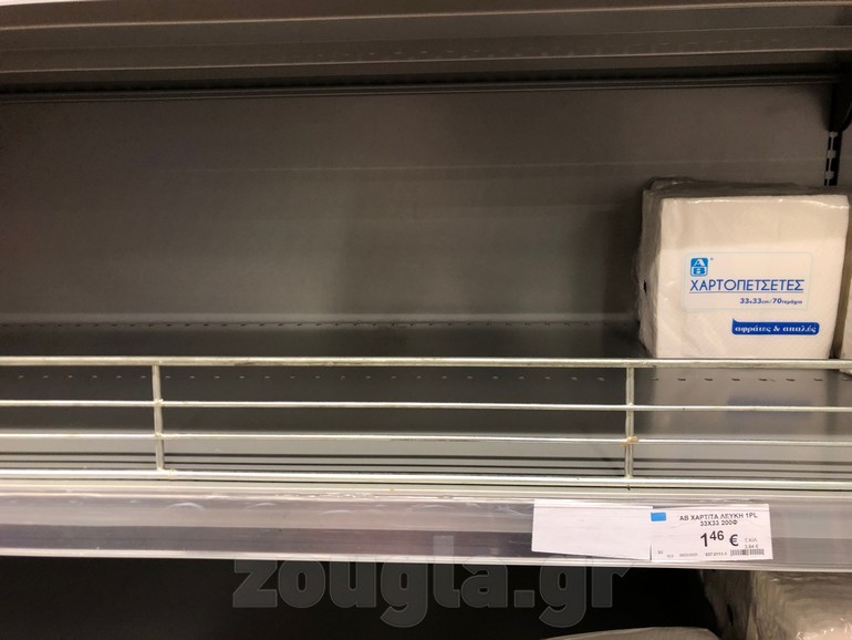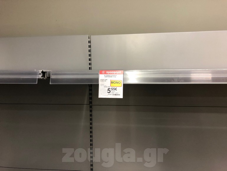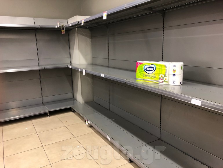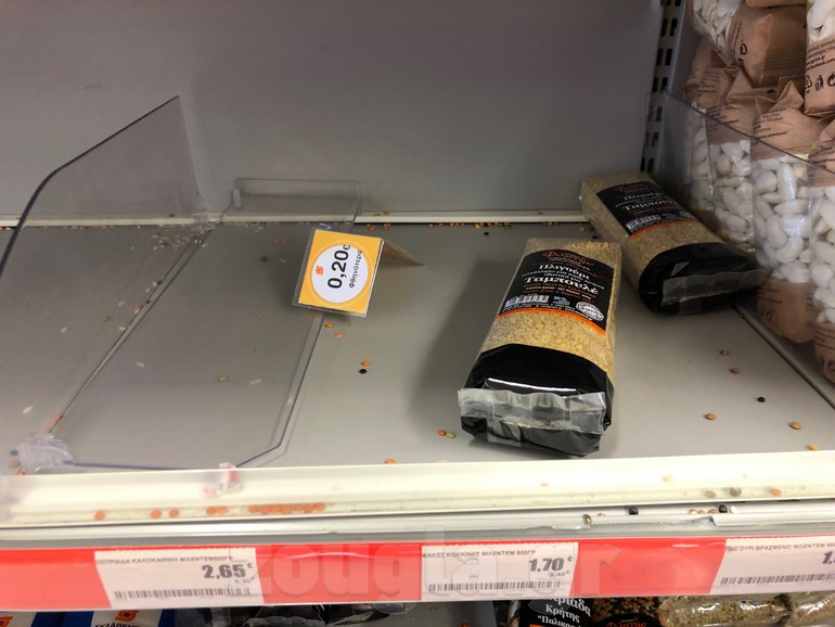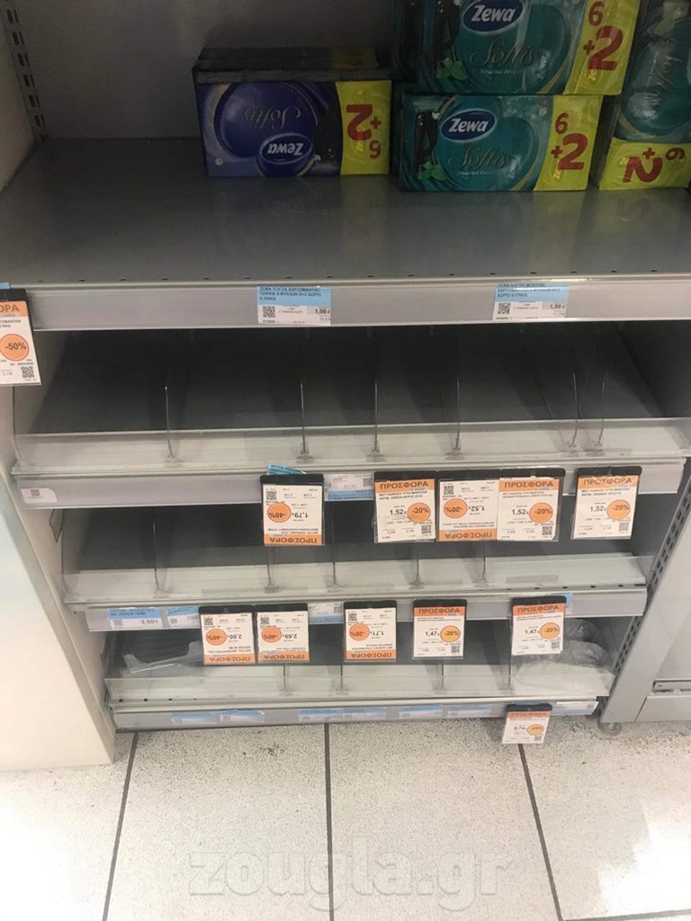 Άδεια ράφια παρατηρούνται σε πολλά σούπερ μάρκετ στην Αθήνα, αφού πολίτες σπεύδουν για να λάβουν προμήθειες… αρκετών εβδομάδων, αν και κάτι τέτοιο, όπως έχουν ξεκαθαρίσει οι Αρχές, δεν είναι απαραίτητο, αφού τα καταστήματα αυτά δεν πρόκειται να κλείσουν.