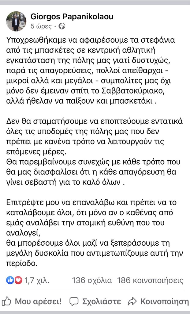 Ο δήμος Γλυφάδας αφαίρεσε τα στεφάνια από τα ανοικτά γήπεδα μπάσκετ, προκειμένου να αποτρέψει τον κόσμο να παίξει, ενώ βρίσκεται σε εξέλιξη η καμπάνια...