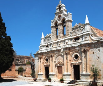 Ακολούθως περιγράφεται επίσκεψη στην ιστορική Μονή Αρκαδίου, που υπήρξε, όπως τονίζεται, το κέντρο της κρητικής αντίστασης κατά των Οθωμανών, και όπου 600 μαχητές της ελευθερίας, ανάμεσά τους πολλά γυναικόπαιδα, είχαν βρει εκεί το 1866 το θάνατο κατά την ανατίναξή της, ενώ όλοι οι επιζώντες είχαν συλληφθεί και αποκεφαλιστεί.