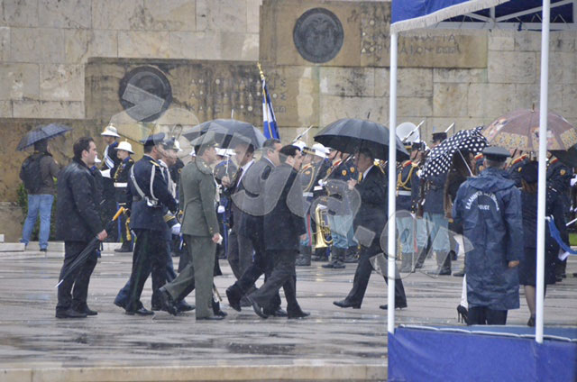 Υπό βροχή έφθασε στην πλατεία Συντάγματος ο υπουργός Εθνικής Άμυνας Πάνος Καμμένος, προκειμένου να παρακολουθήσει τη στρατιωτική παρέλαση για την επέτειο της 25ης Μαρτίου.