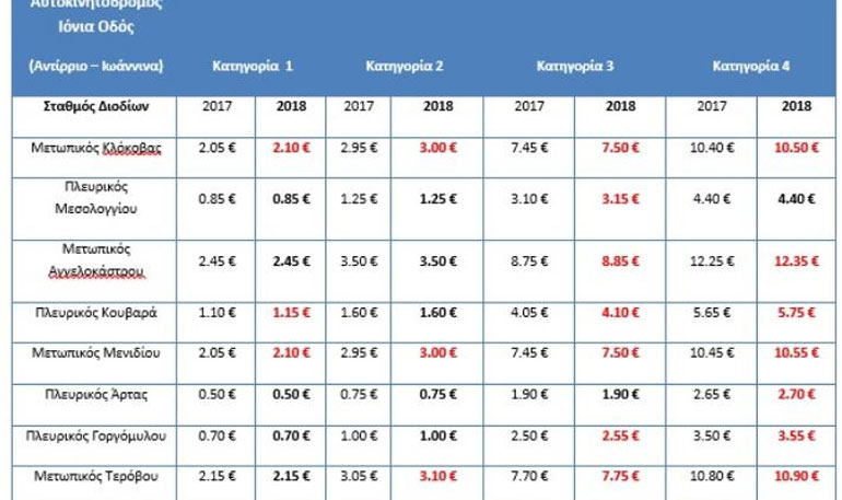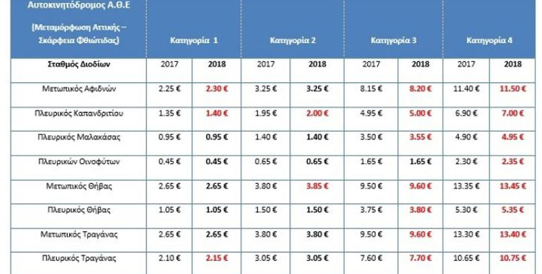 Οι νέες τιμές που θα ισχύσουν αποτυπώνονται στους παρακάτω πίνακες της Νέας Οδού.