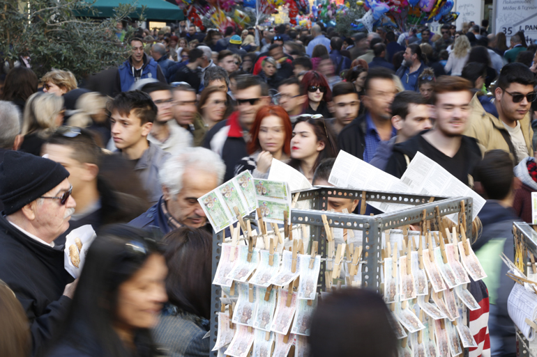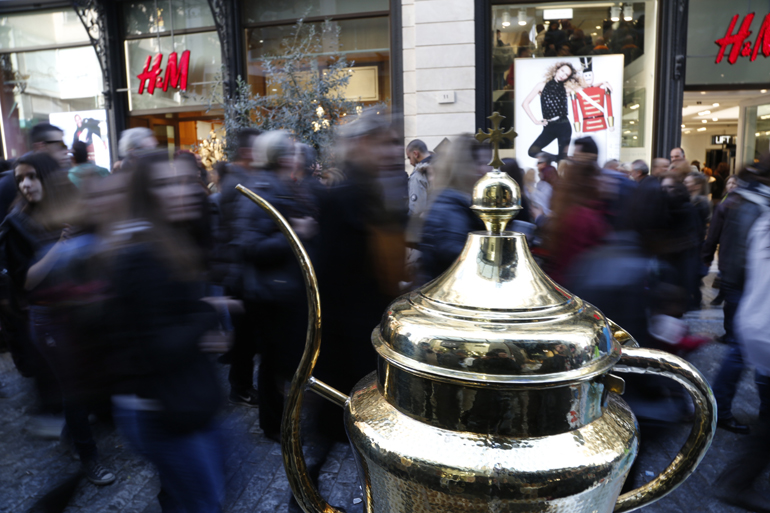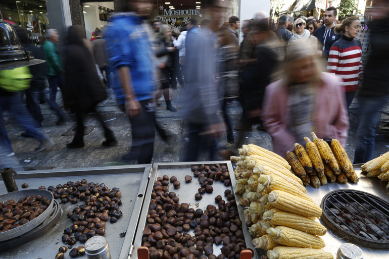 Αυξημένη είναι αυτή την ώρα η εμπορική κίνηση στην οδό Ερμού, με τον κόσμο εκμεταλλευόμενο τον καλό καιρό να συνδυάζει την βόλτα του στο κέντρο της Αθήνας με αγορές διαφόρων δώρων και ειδών, την τελευταία Κυριακή του χρόνου.