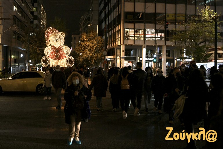 Έντονη κίνηση οχημάτων αλλά και πεζών παρατηρήθηκε στο κέντρο της Αθήνας το απόγευμα της Δευτέρας 21 Δεκεμβρίου, παρόλο που συνεχίζουν να είναι σε ισχύ οι περιορισμοί για τον έλεγχο της διασποράς του Covid-19.