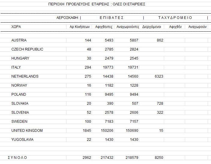 Παρακάτω αναλυτικά όλοι οι πίνακες