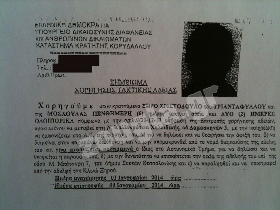 Στη δημοσιότητα δόθηκε το έγγραφο με το οποίο εγκρίθηκε η χορήγηση άδειας στον Χριστόδουλο Ξηρό: