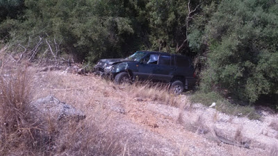 Από το στραπατσαρισμένο τζιπ βγήκε σώος ο οδηγός του, με μικροτραυματισμούς.